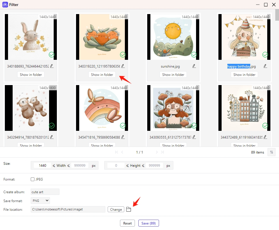 完成的图像将列在文件夹中。您可以单击右下角的“打开文件夹”图标来查找所有下载的图像,或者单击“在文件夹中显示”图标来查找特定图像。